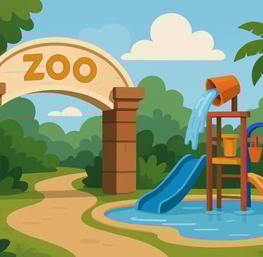 Kids’ waterpark and play areas Another highlight of Batam Zoo Paradise is its colourful kids’ waterpark, which many families use to cool down after walking around the zoo. The water area typically features shallow pools, small slides, splash buckets and even obstacle‑style play structures like a “Ninja Warrior” course for older children.